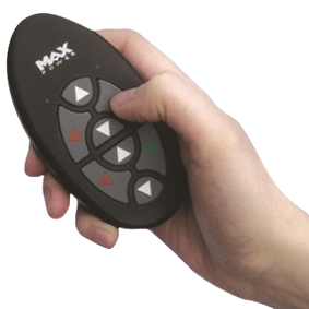 MaxPower-fjärrkontrollen används för att manövrera bogpropellern samt ankarspelet i fören och aktern. Nedan följer en översikt över knapparnas funktioner: